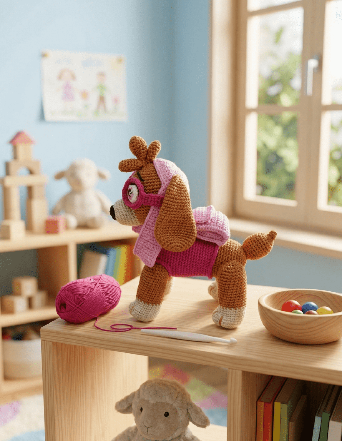 Ez a horgolt Skye figura nemcsak egy játék, hanem egy maradandó emlék minden kislánynak, aki imádja a Mancs Őrjárat mesét. Tökéletes ajándék születésnapra vagy különleges alkalmakra.”