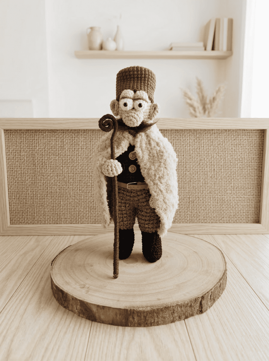 Ez a Magyar juhász horgolt figura a hagyományőrzés és a modern kézművesség találkozásából született, egyedi dekoráció. A karakteres megjelenést az olyan aprólékos részletek adják, mint a bajusz, a hagyományos suba textúrája és az elmaradhatatlan pásztorbot.