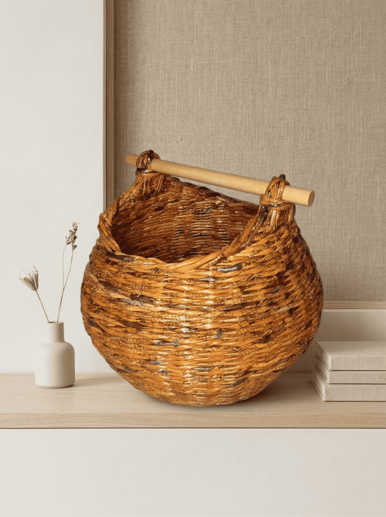 Papírból font, festett és lakkozott kosarak, természetes kenderkötél fülekkel. Praktikusak és dekoratívak egyszerre, minden darab kis szériában, kézzel készül, ezért nincs két teljesen egyforma.